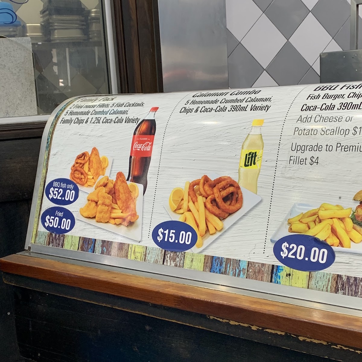 The draw here is straightforward – classic fish and chips done well, along with generous seafood combos and platters suited for a solo meal or sharing. Expect options like Calamari Rings, Scallop and Chicken Burgers, and a variety of combo baskets featuring baby octopus, king prawns, or salt and pepper calamari. Portions tend to be hearty, making it a good stop if you're particularly hungry after a beach stroll or an afternoon swim.